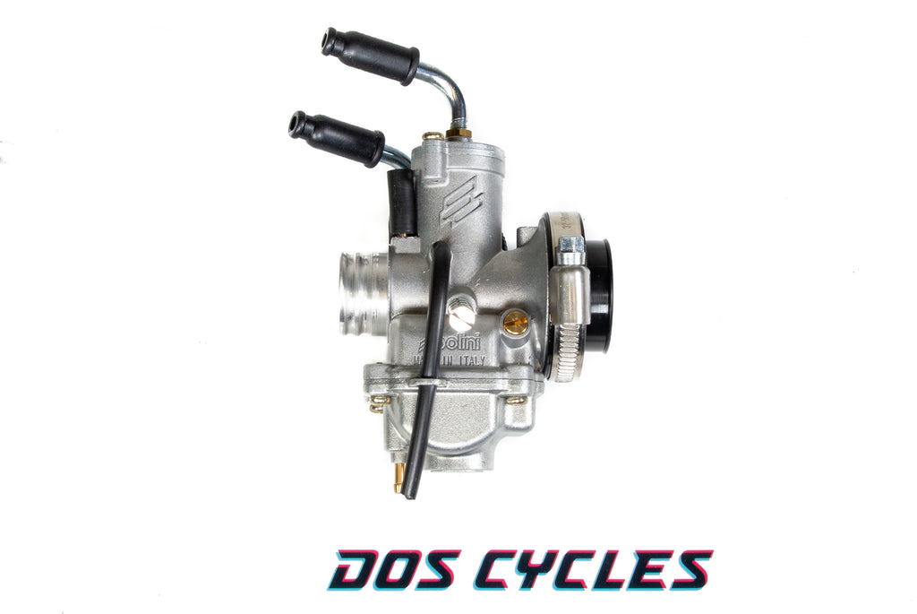 Polini's own carburetor! Solid aluminum construction allows for a lighter weight than comparable carburetors- up to 40% according to Polini. The short, specially designed venturi, allows for optimal flow and mix. Fully tunable carburetor which utilizes the PWK + OKO style jets.